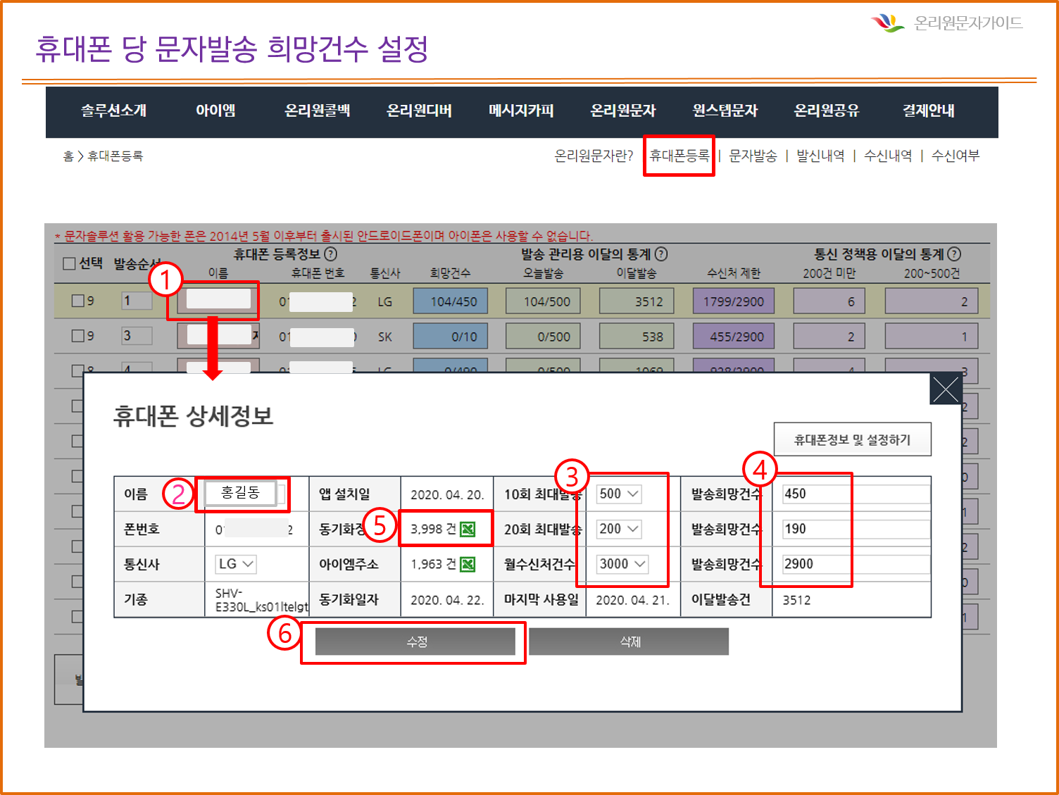 문자 [온리원문자] 발송건수 및 수신처수 직접 설정 2020-04-22 46420